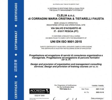 Clelia Consulting è consulenza aziendale Certificata QualitàClelia Consulting23 Aprile 2015Clelia Consulting è CONSULENZA PER IL CAMBIAMENTO. Clelia Consulting è certificata TüV secondo ... Continua a Leggere