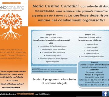 Maria Cristina Corradini relatrice in Reform per Anci InnovazioneClelia Consulting6 Marzo 2015Maria Cristina Corradini, consulente di Anci Innovazione, sarà relatrice alle giornate formative organizzate ... Continua a Leggere