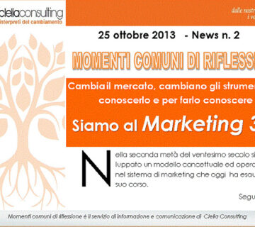 News n. 2 – Momenti comuni di riflessione: Siamo aMarketing 3.0Clelia Consulting24 Gennaio 2014Nella seconda metà del ventesimo secolo si è sviluppato un modello concettuale ed ... Continua a Leggere