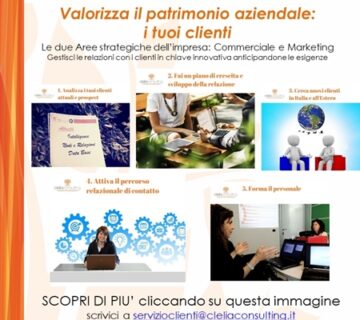 Le due Aree strategiche dell’impresa: Commerciale e MarketingClelia Consulting14 Novembre 2017Per affrontare in modo più competitivo il mercato e rispondere con ancora più ... Continua a Leggere